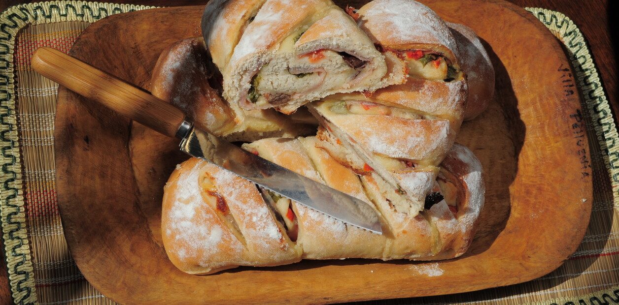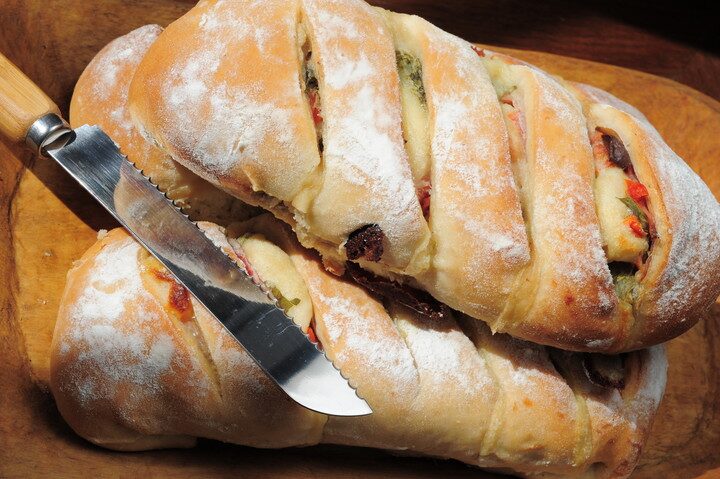 Este pan relleno de jamón, queso y aceitunas se puede pensar como un sándwich que ya viene armado, horneado y listo para salir de casa. No necesita cubiertos y se banca el paso de las horas sin perder sabor. Por eso funciona bien como vianda, para llevar al trabajo, a una excursión o para resolver almuerzos sin muchas vueltas.
